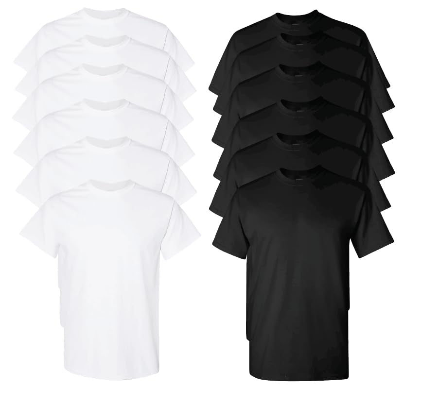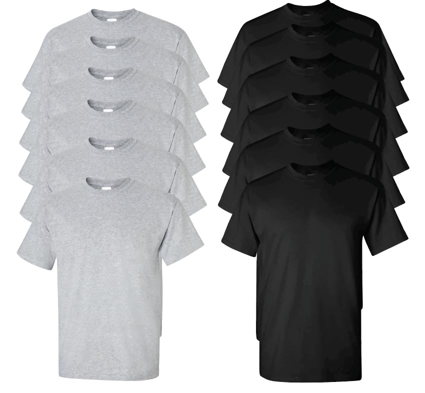 12 Pack of Assorted Mens T-Shirts! Sizes from Small to 5XL Available! This is a random assortment lot. You are guaranteed to receive 12 different color shirts. These are 100% cotton, comfortable T-Shirts that you are going to love! Perfect for everyday wear no matter what activity you are doing in them!