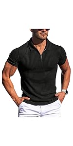 - Unique Design-Ribbed knit material is more breathable than common material, the premium cotton fabric keeps this garment from pilling. If you have strong muscles, the polo shirt will fit well.